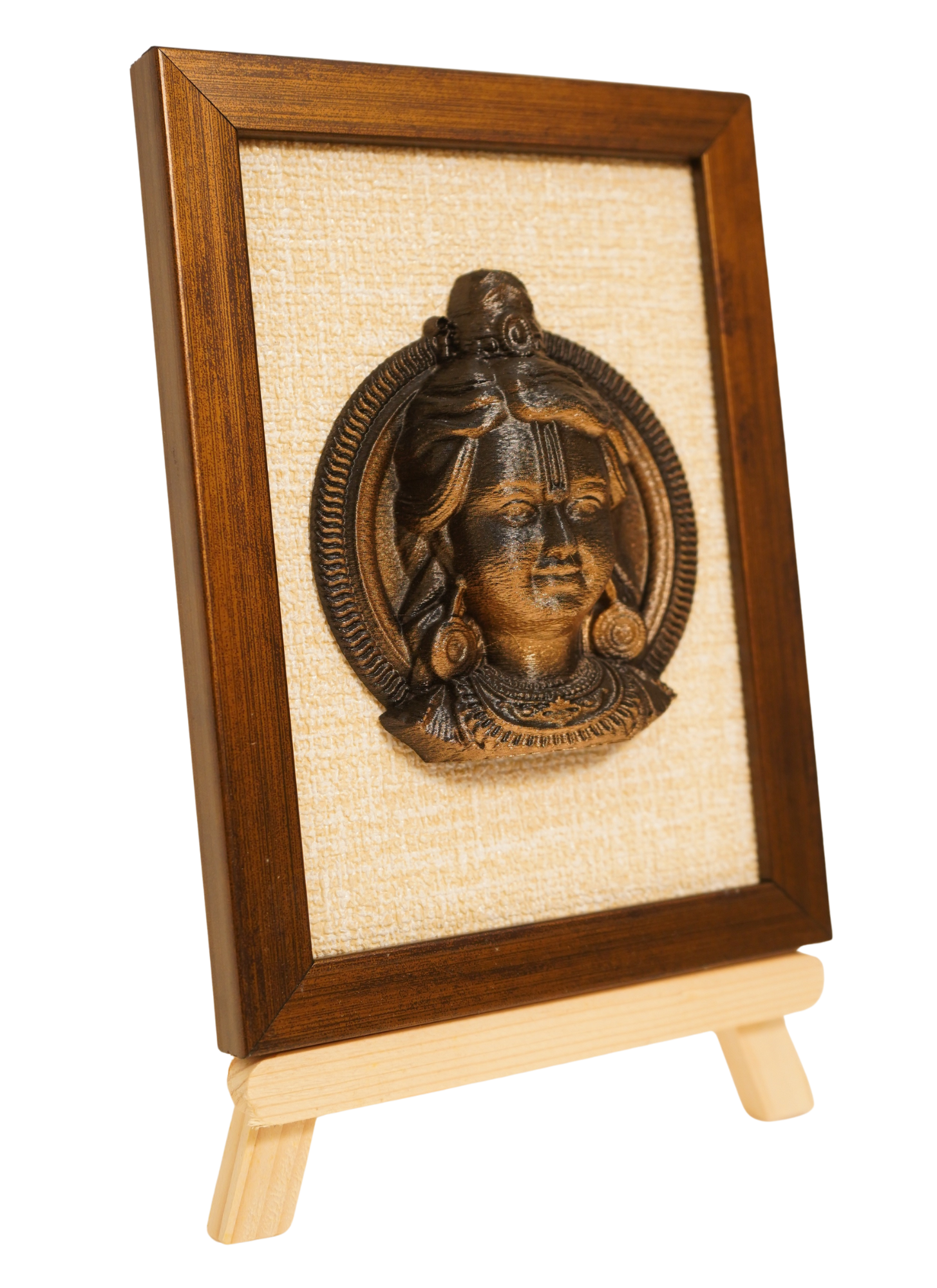 Finished in a refined monochrome tone and elegantly placed on a wooden stand, this artwork seamlessly blends tradition with modern aesthetics. Perfect for pooja rooms, living spaces, offices, or as a meaningful gift, Ram Lalla brings blessings, positivity, and divine protection into every home.